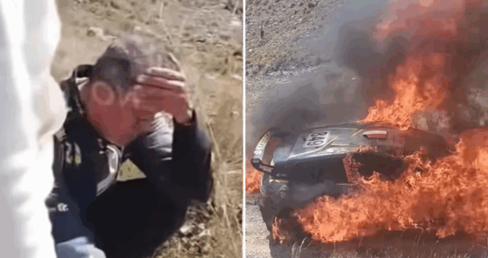El humo se elevó entre los cerros como una nube de tristeza. En las imágenes que recorrieron las redes sociales, se ve a Quispe romper en llanto, arrodillado frente a las llamas que consumían no solo un vehículo, sino años de esfuerzo, sacrificio y sueños. A su lado, su copiloto Gustavo Medina lo acompañaba en silencio, mientras los pobladores intentaban apagar el incendio con lo que tenían a la mano. Fue una escena breve, pero profundamente simbólica: el fuego no destruyó un auto, sino que reveló la fibra emocional que hace del deporte motor una pasión que trasciende el metal y la mecánica.