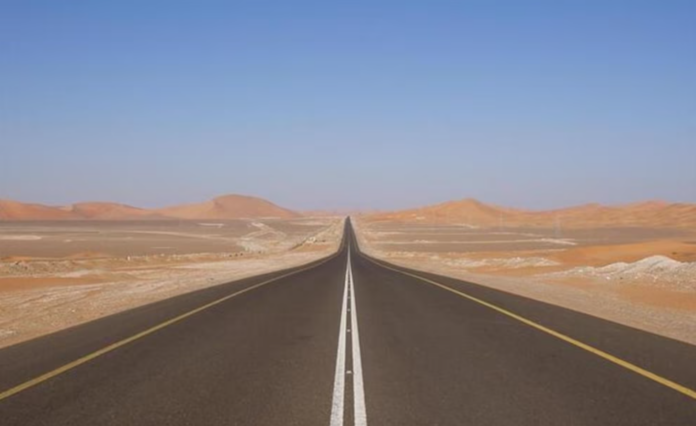 La particularidad de esta carretera se explica por el paisaje que atraviesa. El Rub’ al Khali, considerado uno de los desiertos de arena más grandes del planeta, ofrece una geografía casi plana, sin montañas, valles ni obstáculos naturales que obliguen a modificar el trazo. Esa condición permitió construir una autopista prácticamente lineal, algo poco común en la infraestructura vial mundial.